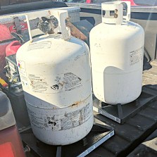 After breakfast (fortunately I had some roasted eggs already prepared so I didn’t need the stove) I exchanged the two empty LP bottles for full ones. The empties were loaded in the back of the truck and away I went..