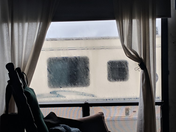 The overnight low was 65° and we had three tenths of an inch of rain. I don’t know how strong the wind was overnight, however we had an ice chest full of empty aluminum cans (for recycle) on the deck that was blown off and over with cans scattered everywhere.