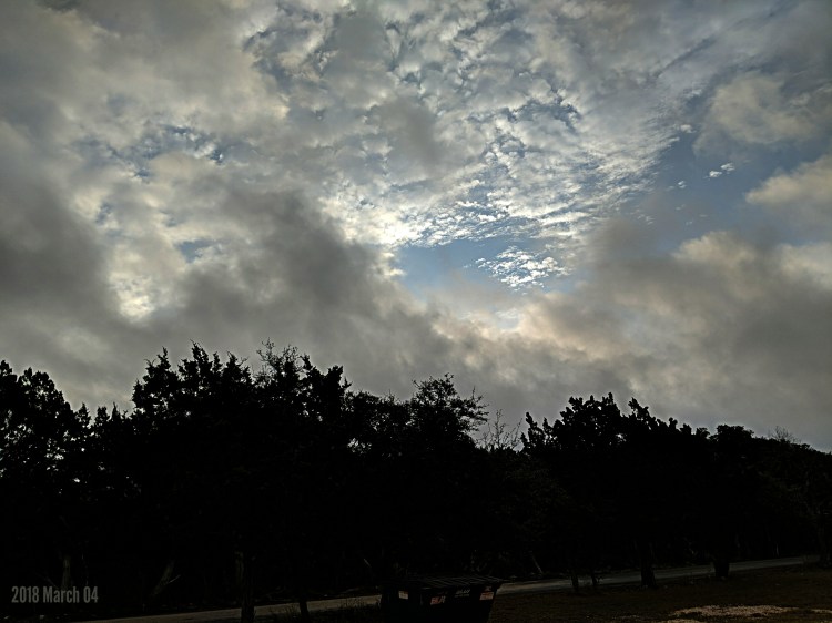 61° with a low flying cloud or maybe it was a lifting fog that drifted like smoke just above the juniper trees.