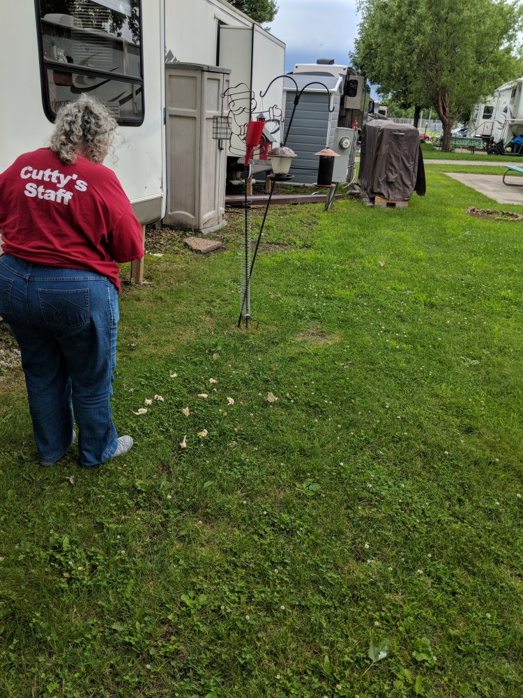 When we arrived home, Ella stopped to feed the birds before coming inside. She got in just ahead of the rain.