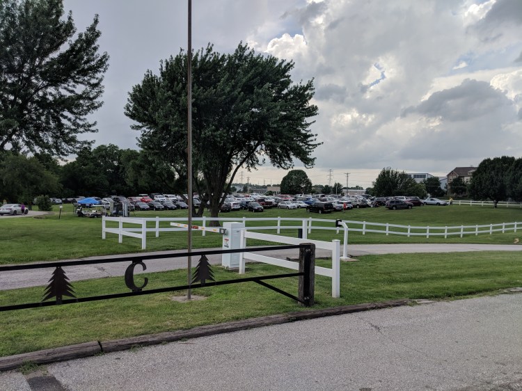 To keep our roads clear for emergency vehicles, only people actually registered to camp, can enter the grounds. All others (visitor or member) were parked and shuttled in.