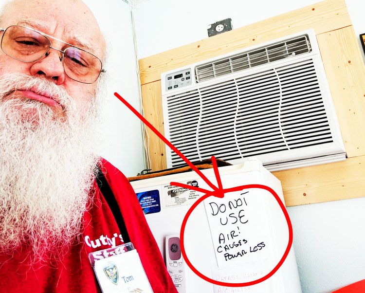 I worked the afternoon shift. The air conditioner wasn’t too be used because it would cause the computers to go down.