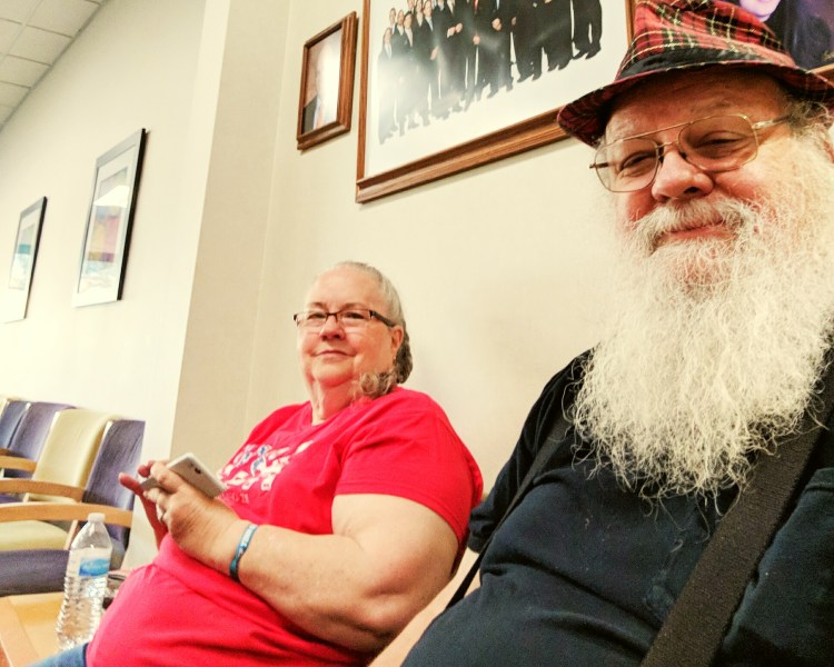 Ella had an eye appointment for 8am at Wolfe Eye Clinic®. We arrived about a half hour early. We went in the exit door and found a place to sit and wait. Right at 8 they called her to the reception desk to get her insurance information et cetera.