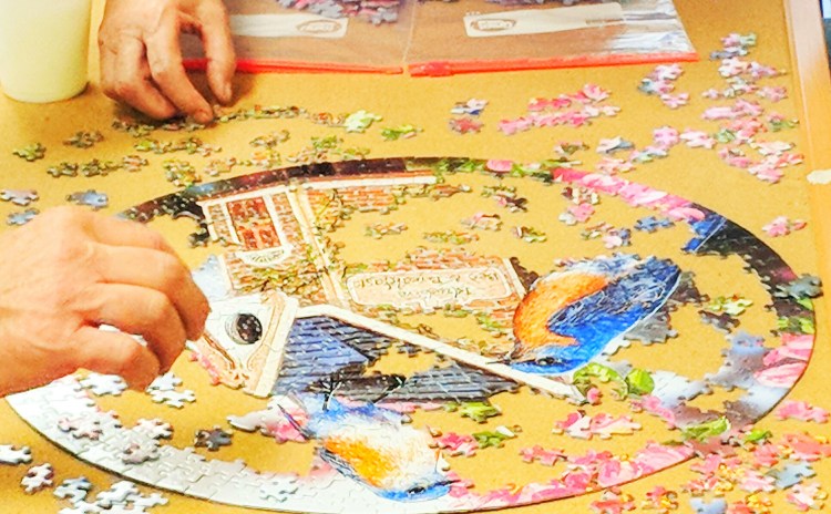 Several people worked on jigsaw puzzles. These are very popular here also.