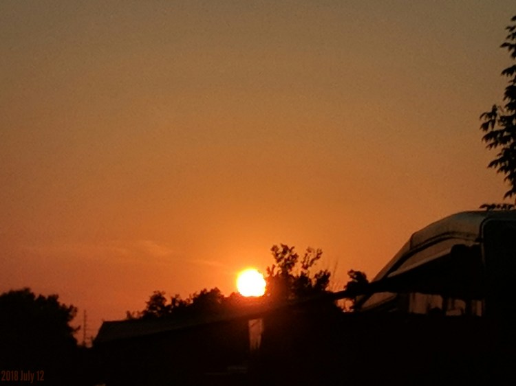 These sunset photos are becoming monotonous. No clouds to bring color and shape. Just this burning white ball in a burnt orange sky.