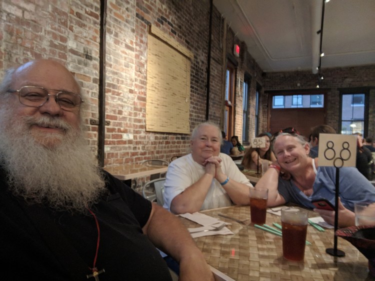 Kara, my niece, meet up with us at the senior center for lunch and played games.
