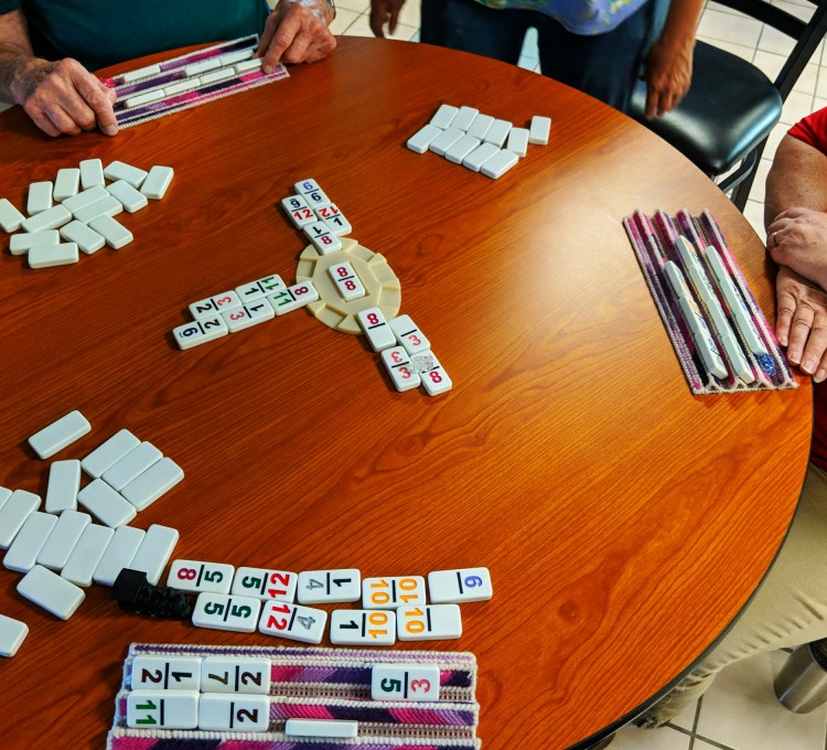 Went from playing dominoes back to Village Inn to visit with Lyn.