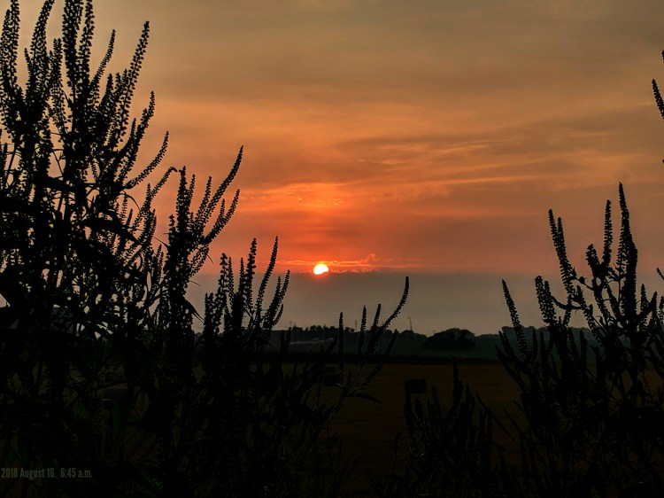 66° with an almost foggy haze in the air. It is amazing that the forest fires on the west coast could be affecting the air in the Midwest. It kept the temperature from going above 82° at noon and kept it steady there until after 4 p.m.
