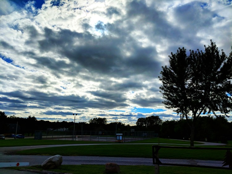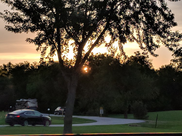 From 93° yesterday to 44° overnight and, yes, it did storm. Lots of wind all night long. Something kept kicking against the side of the trailer. I hope it wasn’t someone or something wanting in ’cause I didn’t get up to check. I’ve seen too many horror stories that start that way! Grin.
