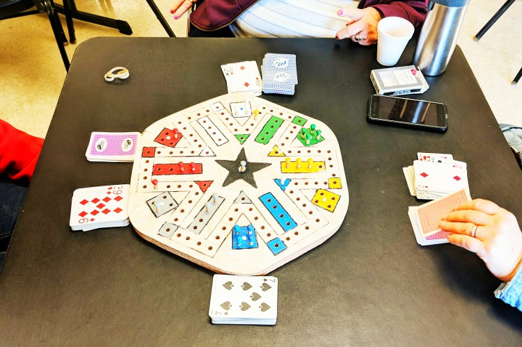 Since we had broken up the coffee clutch, we went ahead over to the Grimes Senior center. And played a couple rounds of Fast Track before lunch.