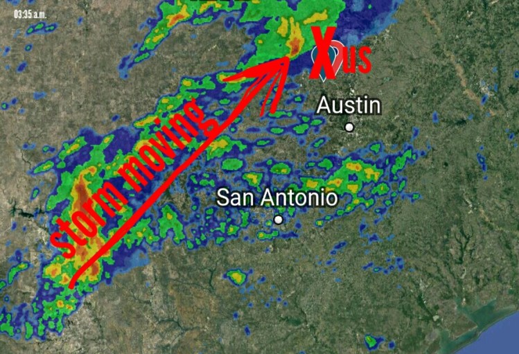 This first image is from 3:30 a.m. I’ll explain why I was awake at that time, in a moment. The second image is from 9:25 p.m. We were never in the center of the storm, but it just kept coming.