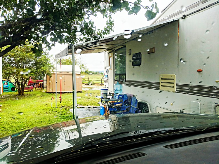 No rain in the forecast for today. But that doesn’t mean that it isn’t wet. The puddles (our moat) still has lots of water and the trees are still dripping.