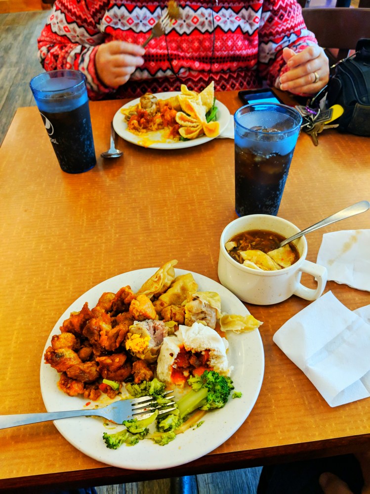 Lunch at China Spice. Not a large selection but good. The hot and sour soup was too spicy for me … and that’s unusual.