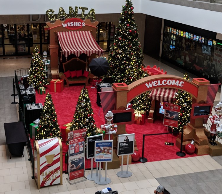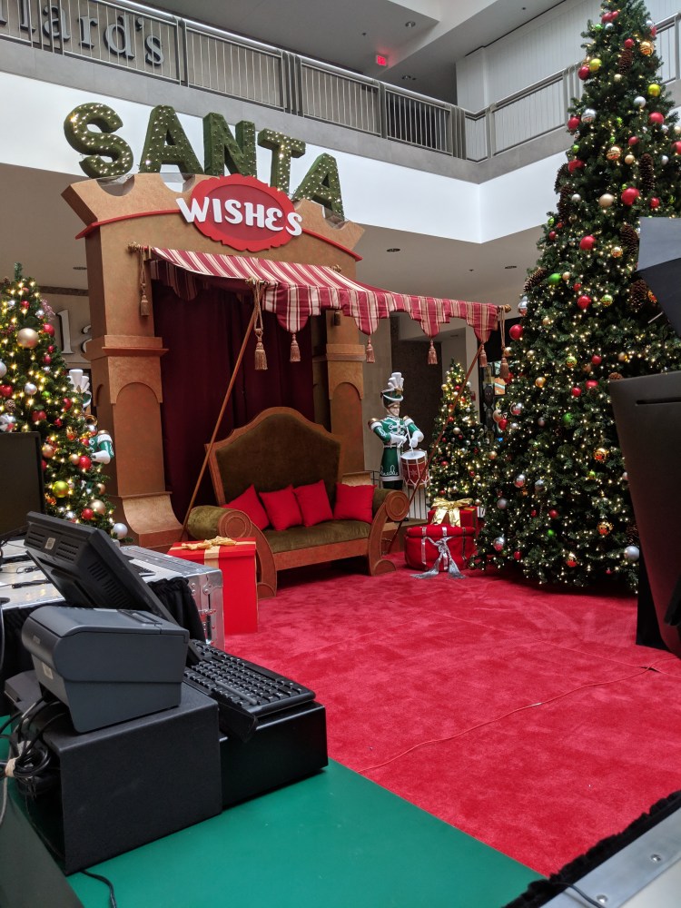 Mrs. Claus and I began our work in Lakeline mall today. It is the same set as last year but arranged differently.