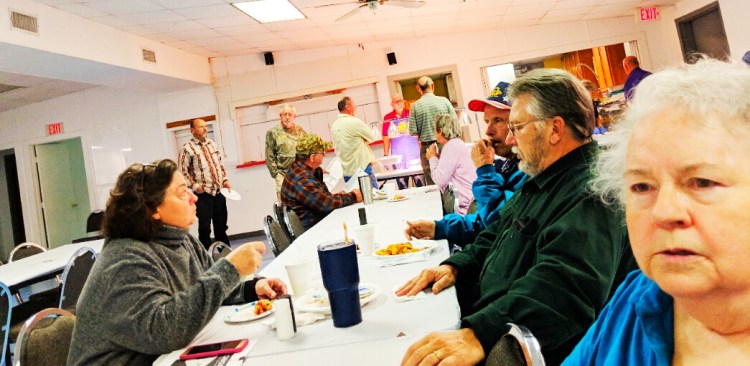 VFW Fish fry tonight in Liberty Hill. I hurried home after work to get Ella and then back into town to eat cornmeal coated fish, fries, pinto beans, hush puppies, and coleslaw. I didn’t eat the slaw because it contained onions and I didn’t want to try out my eppy pen.