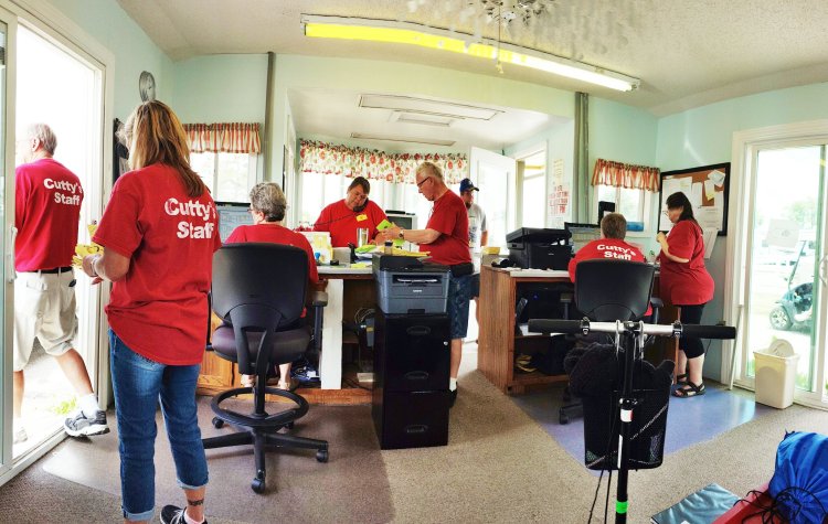 Manning the fee booth is normally a solitary job. Today it was “all hands on deck.”