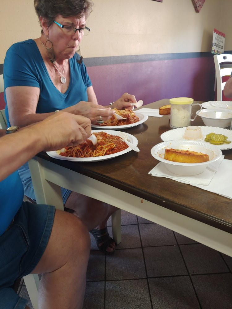 Every Thursday The Cutty’s cafe had a special full meal. Tonight it was spaghetti with meat sauce, garlic toast, and salad. I ordered 3 so threat is have some for my lunch tomorrow. Then Ella only ate half of hers.