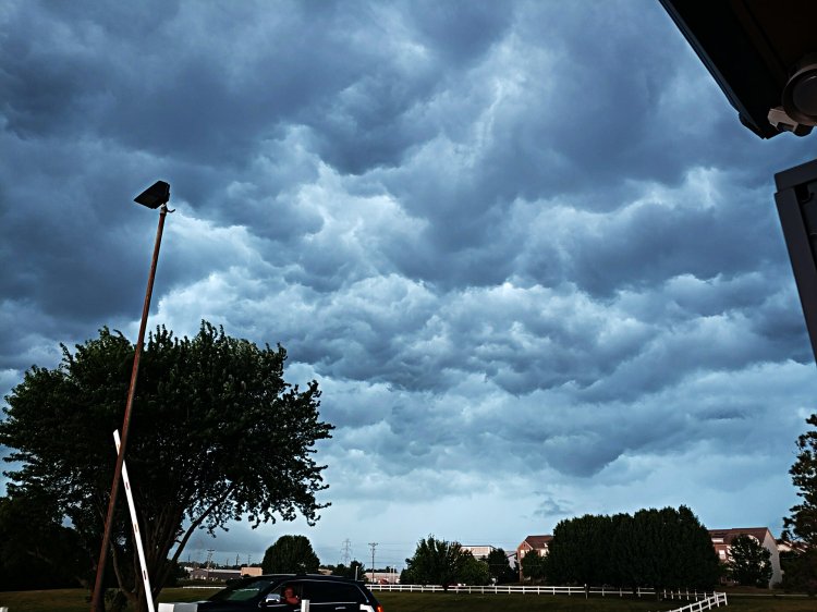 73° and 93% humidity with an EXCESSIVE HEAT WARNING! still in affect. It had reached the upper 70s before the storm blew through. Then It quickly dropped to 65°. But managed to race up to 84° by afternoon.