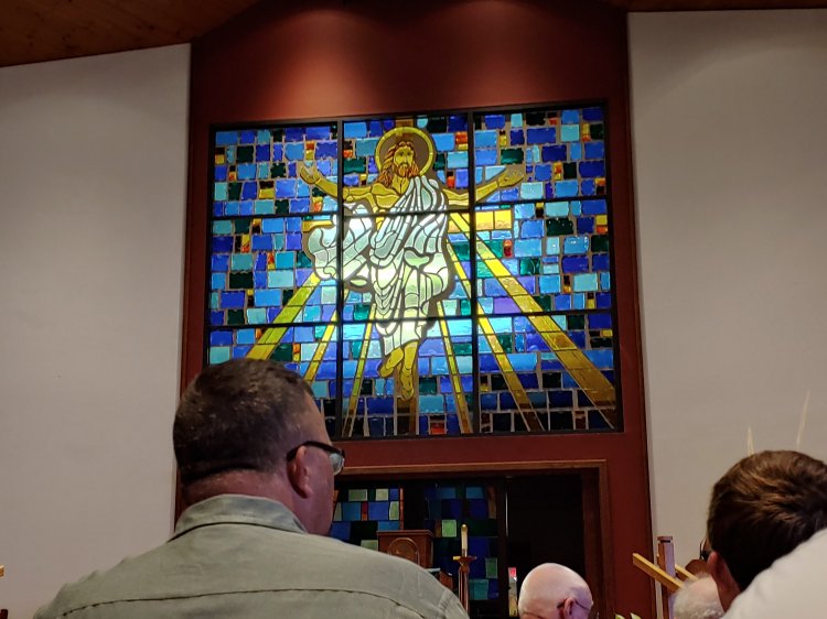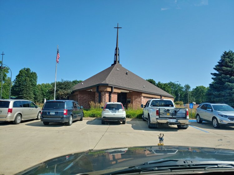 We gathered for The planting of this tree.it is in memory of or friend Sharon Seeman, who died recently. The planting was done at Cutty’s Des Moines Campground just before we drove to her Catholic church in Madrid, Iowa.