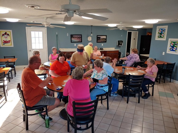 Friday night is Card Jackpot art Cutty’s adult center. We had four tables of four each. Each table had a deck of cards. The cards are dealt so that everyone has 13 cards. There is a deck of oversized cards that is shuffled and then turned over 1 at a time and that card called (like in bingo) the person at each table who has that card discards it into the center of the table. The person(s) who discard their final card yells, “Jackpot”. They win the pot for that round. If there are more than one winner, they split the pot. There are 10 rounds at a nickle and the final round is played for a quarter.