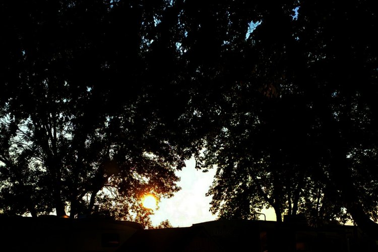 The morning hazeness made the sun look like a small yellow ball in a white sky. Maybe an egg yoke lost in the white of the egg.