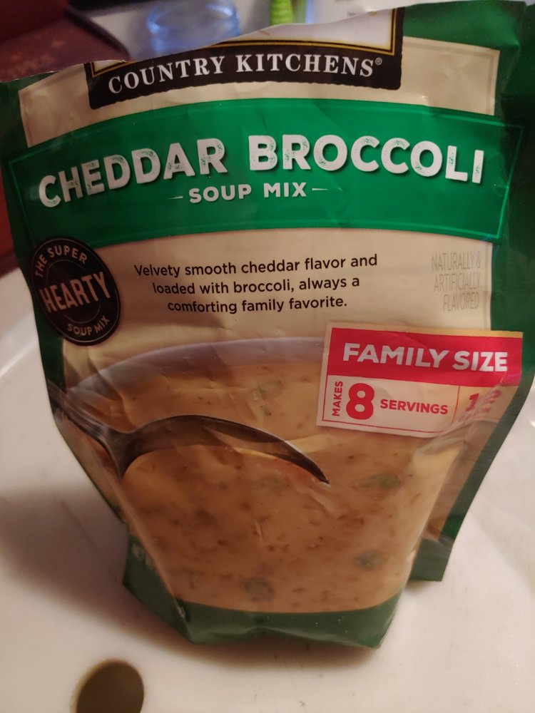 Ella has been wanting to try some Bear Creek cheddar broccoli soup mix. She bought some along with the fresh broccoli to add to it. Tonight we had it for supper. It was good. And easy.