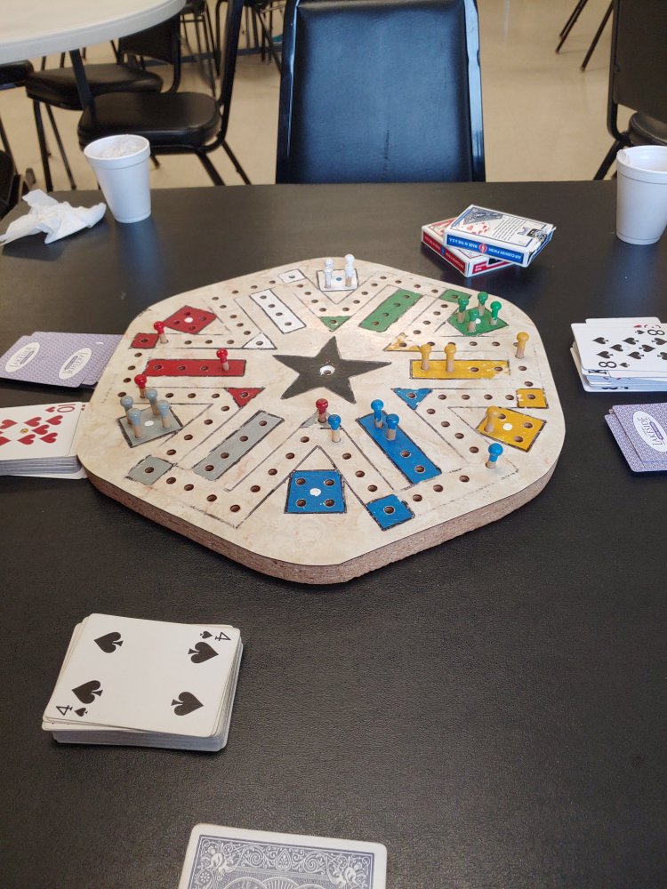 We arrived at the Grimes senior center around ten this morning. We quickly got a game of Fast Track going.