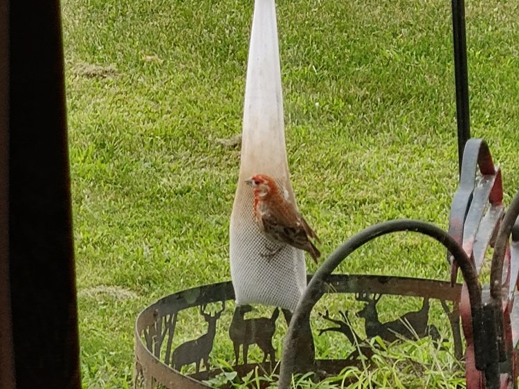 Mr. and Mrs. Goldfinch dining with Mr. Housefinch