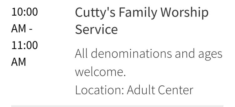Our worship services are winding down for the season. Today, the 25th and September 1st are all that are left.