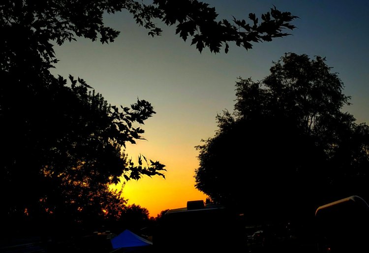 All day with no sunshine. Dark cloud all around us threatening us with storms that never appeared. Then at sundown the western sky cleared. For a moment or two the sun shone.