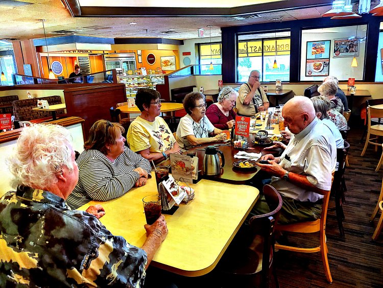 We got the whole gang together at Village Inn this afternoon. This may be the last time this season that all 12 of us will be together. And at the age of the group members, who’s to say if we will ever sit together again in this existence?