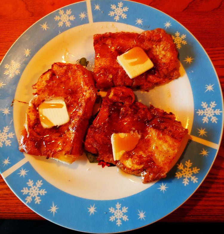 A good morning for French toast. Also a good morning to not go to the cafe for coffee.