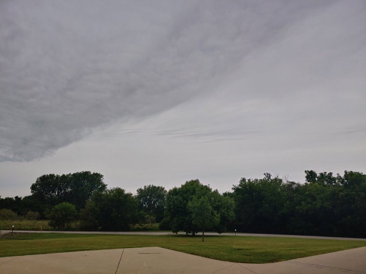 Grey and overcast with some odd clouds.