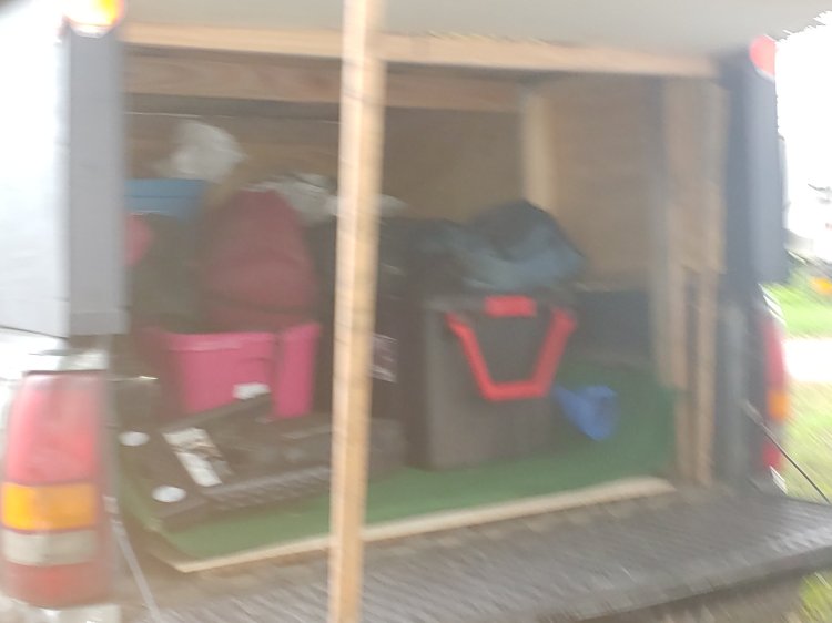 I laid some plywood on the bed of the truck. I them laid indoor / outdoor carpet. Then came the loading of things from our shed. Most of this stuff will go to the shed in Texas.