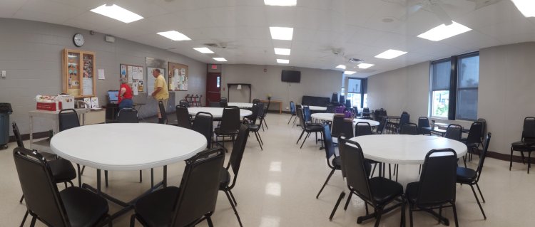Because we missed the cafe, we arrived early at the Grimes senior center. We helped set up chairs and table decorations.