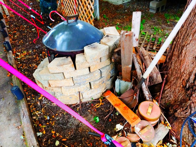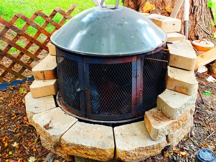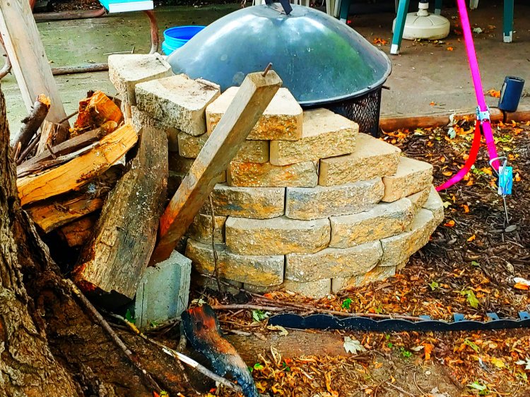 This is what I did yesterday. I added 20 more blocks to surround the outdoor fireplace. Now there is almost zero chance that the wood pile will catch a spark.