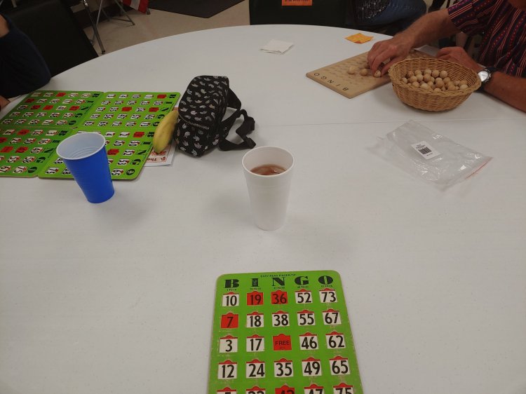 There were 7 tables full of people for lunch. Only a few stayed for bingo.