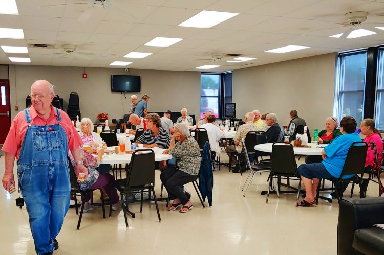 Pasta with Italian sausage, mixed veggies, pineapple, French bread, and chocolate milk was today’s menue at the senior center.
