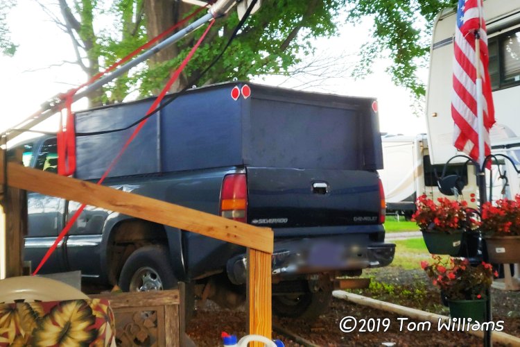 I backed Rudolf the red nosed pickup as close as I dared to the deck, so that we could load more stuff into the topper