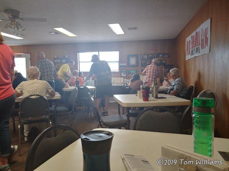 There were 44 at Over The Hill Gang today. Not bad for a day that they aren’t serving chicken. That’s right, the once a month day, when they serve fried chicken, is the most attend attended day of the moon month. Today they served meatloaf (the food, not the singer/actor)The meatloaf contained onions. Th The last time I are meatloaf weedy containing onions, I look looked like this …