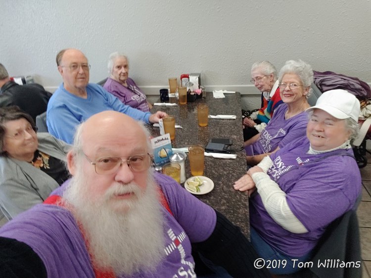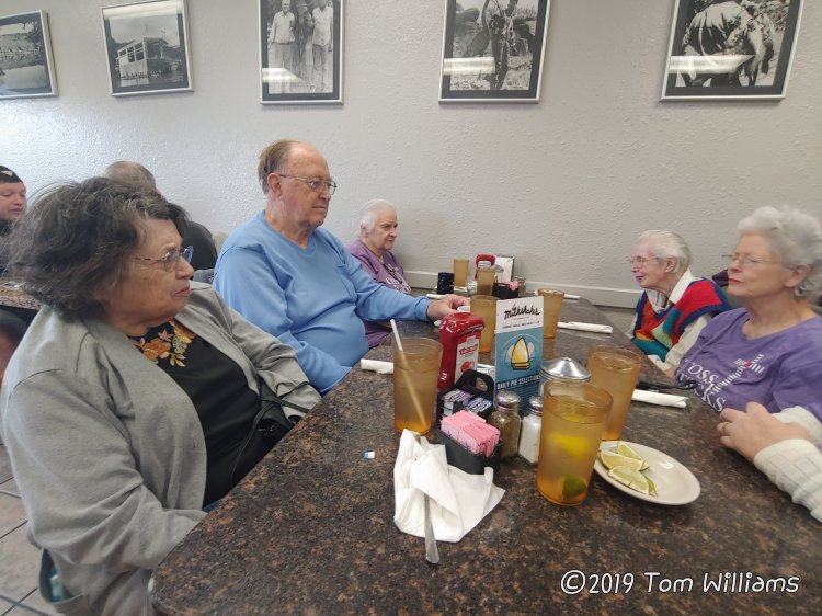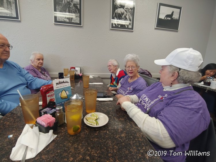 e my met at the church and loaded the back of our pickup with the collected aluminim cans. Ella adds I took the cans to the recycle center in Marble Falls. The rest of our group went ahead to the Blue Bonnet Cafe and secured a table for us. It It is a very busy placed. As a were were leaving, there were about 30 people waiting in line to enter the restaurant.