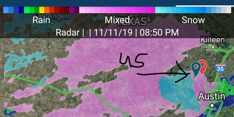 t looked fine in the morning, but hang on to your hat (literally) ’cause the times they are a changin’. It reached the high of 69° early on and then started to tumble toward that predicted low. By the time I was off work at 4:30 the temperature was at 36° and the wind was whipping around pretty good. I arrived home about 5:45 and the temperature was 33° that felt like 21°. There was an Emmaus meeting inn Leander that we had planned to attend but changed our minds. High, gusty wind, darkness, twisted hilly roads, rain, and below freezing; all added up to a bad night to be on the road.