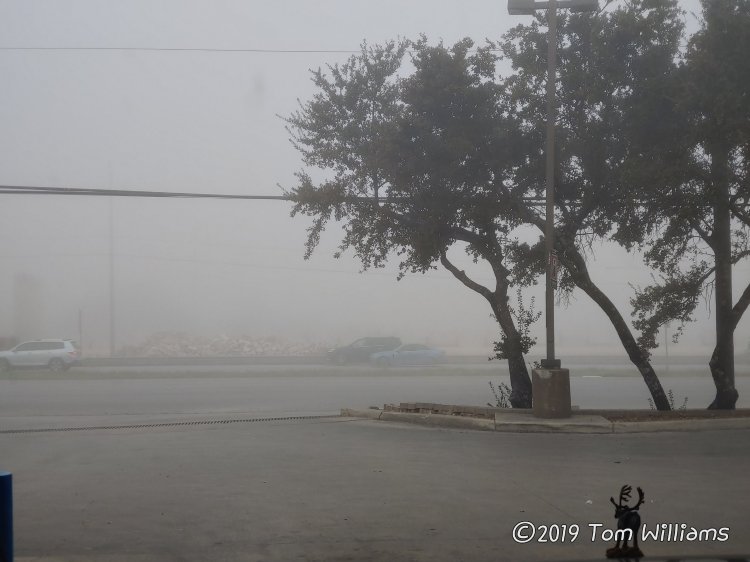 s I was filling the tank, a thick fog enveloped everything. It was eerie that it didn’t slowly build to foggy. One minute it was clear and the next it was fog.