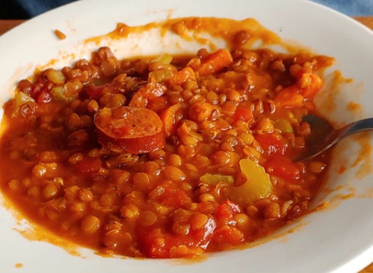 know a lot of y’all eat Hoppin John for New Year’s. Well I have my own traditional New Year’s meal, lentils and kielbasa. I don’t know how this became a tradition for my mother. She grew up in southern Iowa from German stock that arrived in Iowa by way of Virginia and Kentucky. So the tradition of hoppin’ John would have fit right in. However, for us it was lentils and kielbasa sausage, which is more of an Italian tradition (sort of).