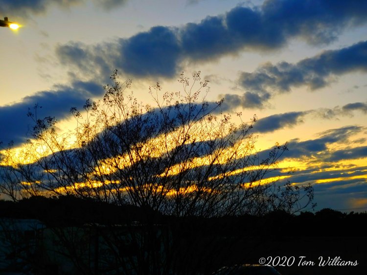 ery colorful sky as the sun begins its long, slow climb into the air. With a predicted high of 56, it appears that all the sunshine isn’t going to be converted to heat in the atmosphere. I still have hopes that, as it streams through our windows, we will have some passive solar heat inside. (It did. It was 76° inside when we returned home.)