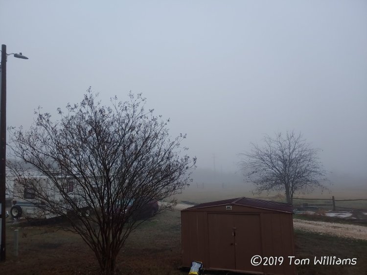 made it to work, thank you for asking. Before I made it to work, I made it to the Over The Hill Gang building in Liberty Hill to drop Ella off for a Grandies meeting. She reports that only 6 people showed up (I suspect the fog got them) so they cancelled the meeting and went out for breakfast. One of our friends drove her home afterwards.