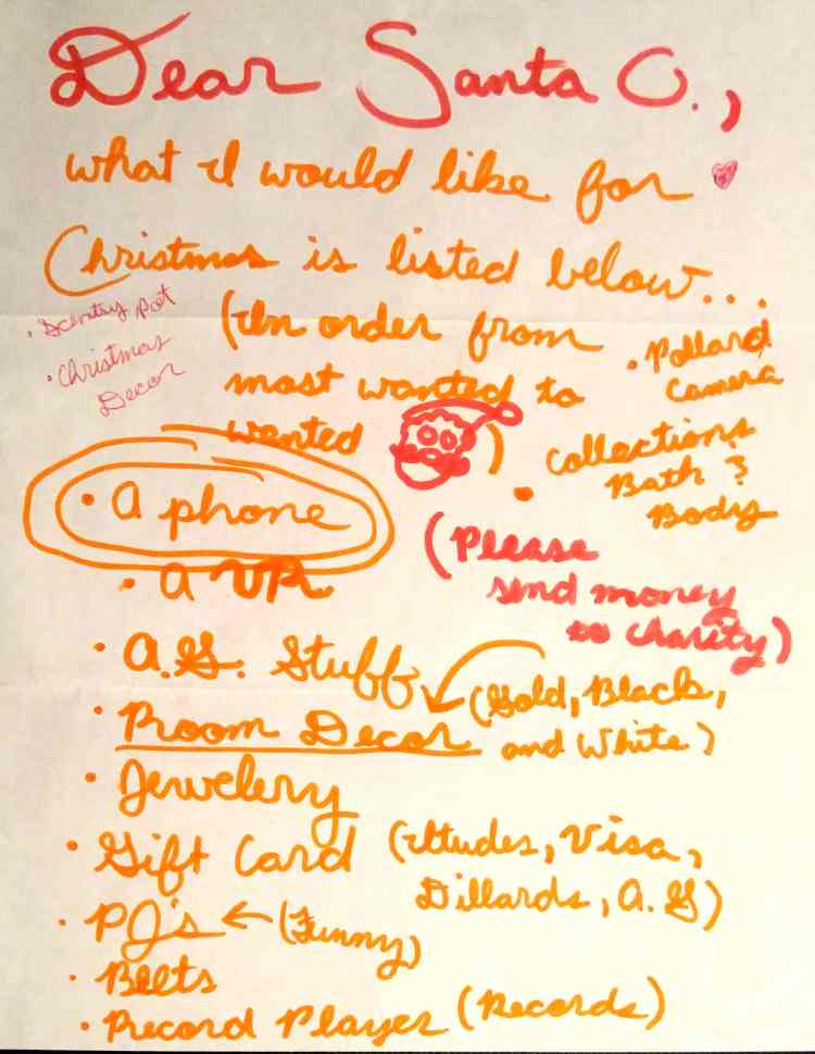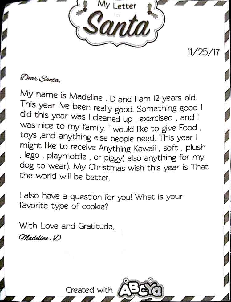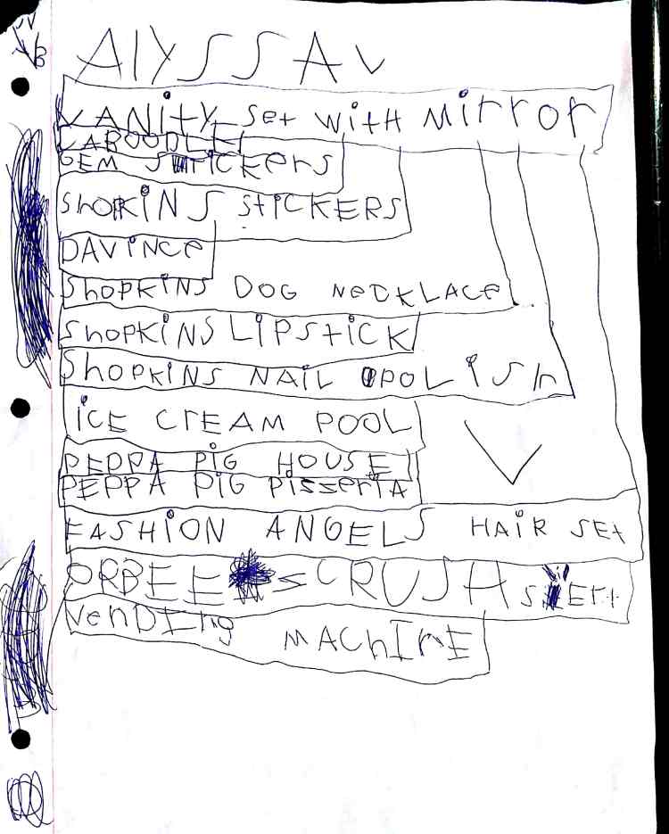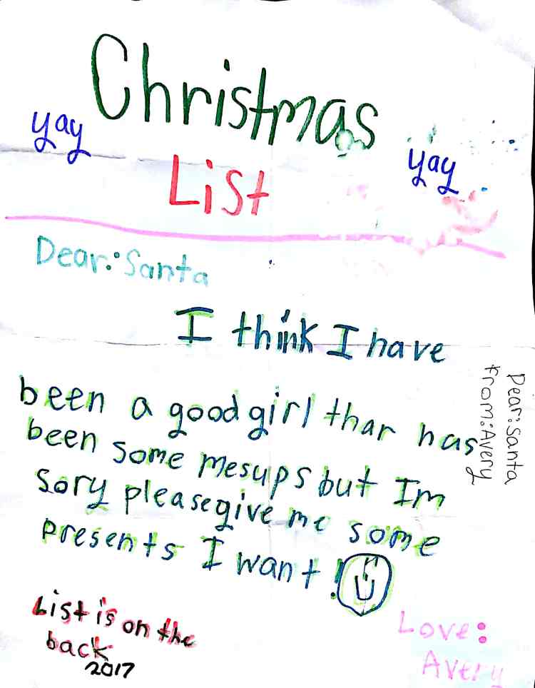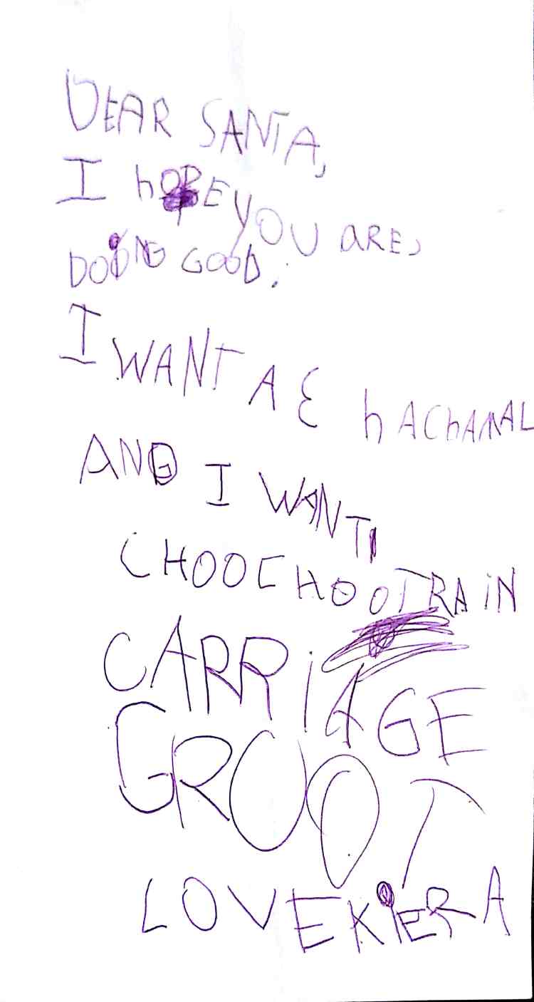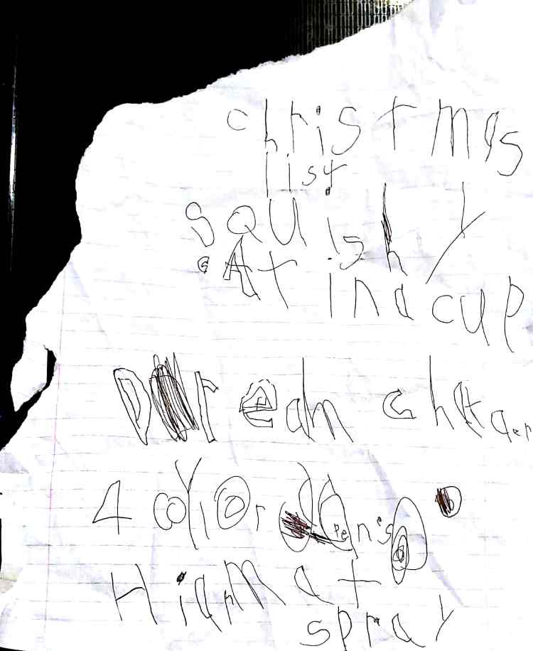 Monday 18th This was an unusual day for two reasons. One, I worked the afternoon/evening shift, 4-9. Santa Charlie had an engagement in the evening so we traded shifts. Two, Ella answered regional manager, Kerri’s, call from someone to work the last week at Lakeline Mall. She sat in the archway and greeted people as they came in. She also helped to keep it organized. She will continue to work with me for this final week.