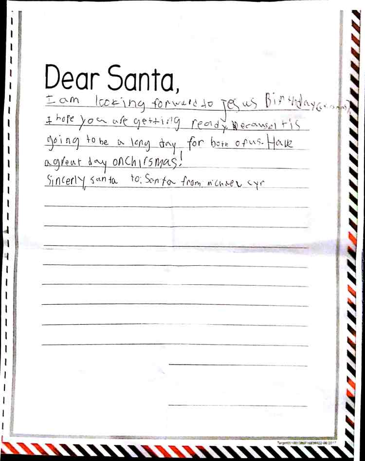 Tuesday 14th was a slow day for Santa. That’s not to say it was unremarkable. I noticed a special needs person and their helper going down the mall. Since there were no children waiting to see Santa, I went out into the mall to greet him. He grabbed my arm and gave me the biggest smile. He was nonverbal but I told him that he was loved and that I was glad I had a chance to see him today. His helper thanked me over and over for taking the time to come out to talk to him. I said, “That’s what anyone would do.” “No,” she said, “it isn’t.”