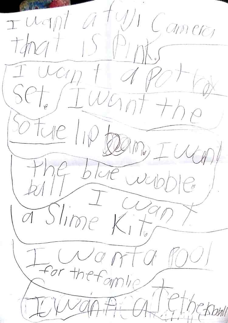 One little girl would come within arms length (mine not her’s) but no further. I pulled out one of my small toys to show her and “accidently” dropped it in front of her. Then I asked her if she would please hand my toy back to me. She picked it up. When I didn’t reach for it, she moved next to me and gave it back. I thanked her and then started a conversation with her. I asked what her favorite toy (that she already has) is. And we got to talking about unicorns. She never did sit on my lap but these would have been great photos … would have been being the operative word.