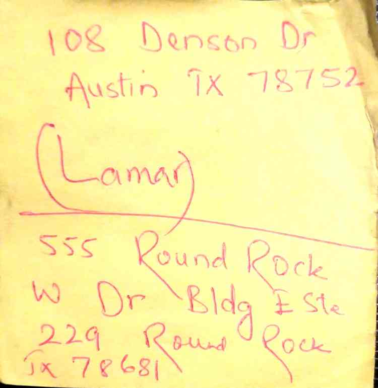 Around ten o’clock Louine, Donna, Cephas, Wanda, June, Ella and I formed a caravan and headed west. I had to stop outside of Burnet because one of the garbage bags had come untied and some cans flew out the back. The other three vehicles were ahead of me and didn’t see me stop. Ella sent a text message to say what had happened and that the bag was retied, and we were back on the road again.